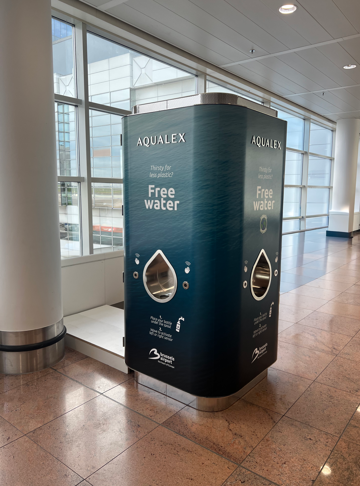 Het project kreeg een nieuwe dimensie toen we de Loop installeerden op een luchthaven, waar gemiddeld 2.500 liter water per dag uit één toestel wordt afgenomen. Het toestel is volledig uitgerust met slimme componenten die het mogelijk maken om data op afstand uit te lezen en om delen van de installatie indien nodig vanop afstand in of uit te schakelen.